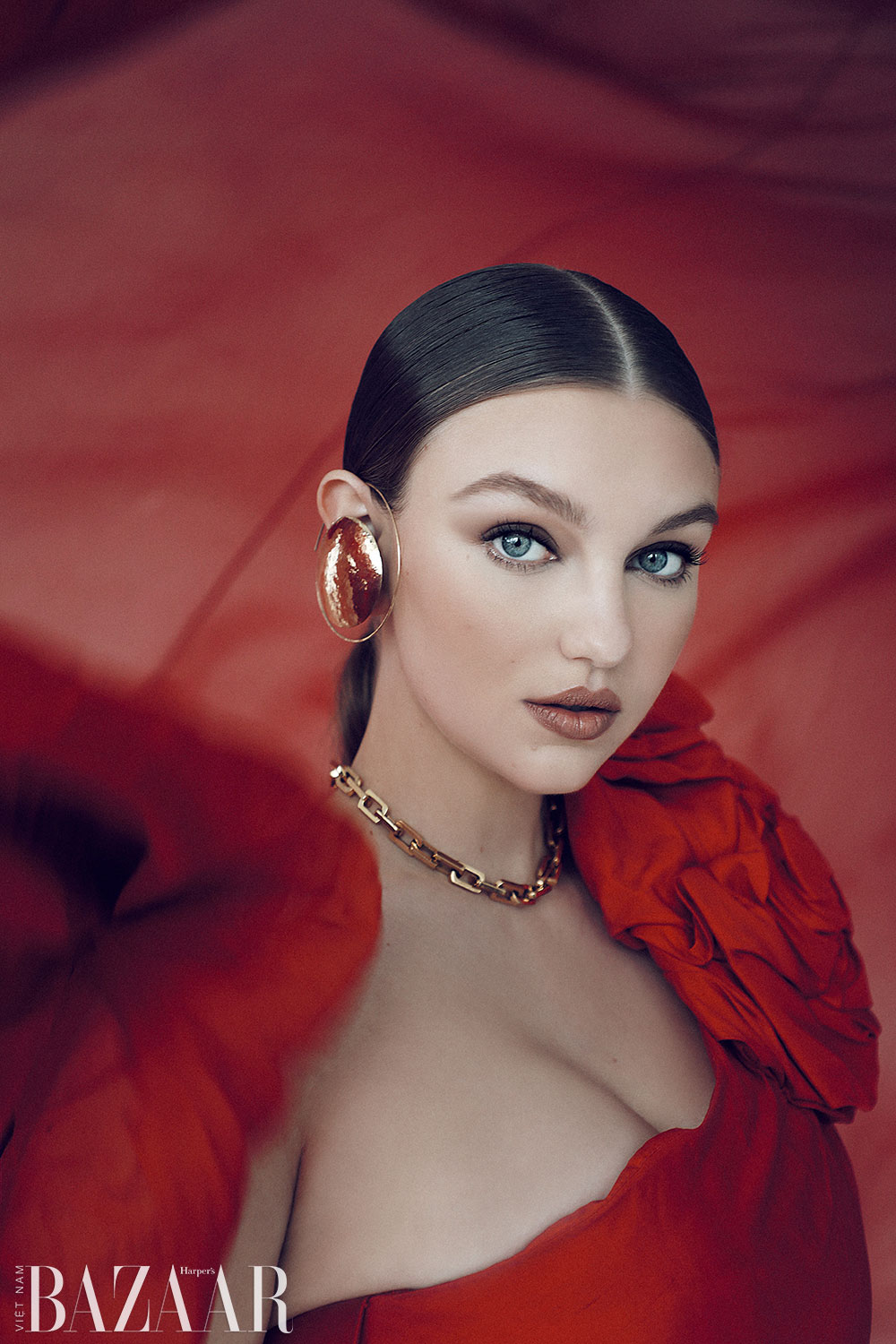 Đầm: Celestino Couture. Bông tai: Zelik