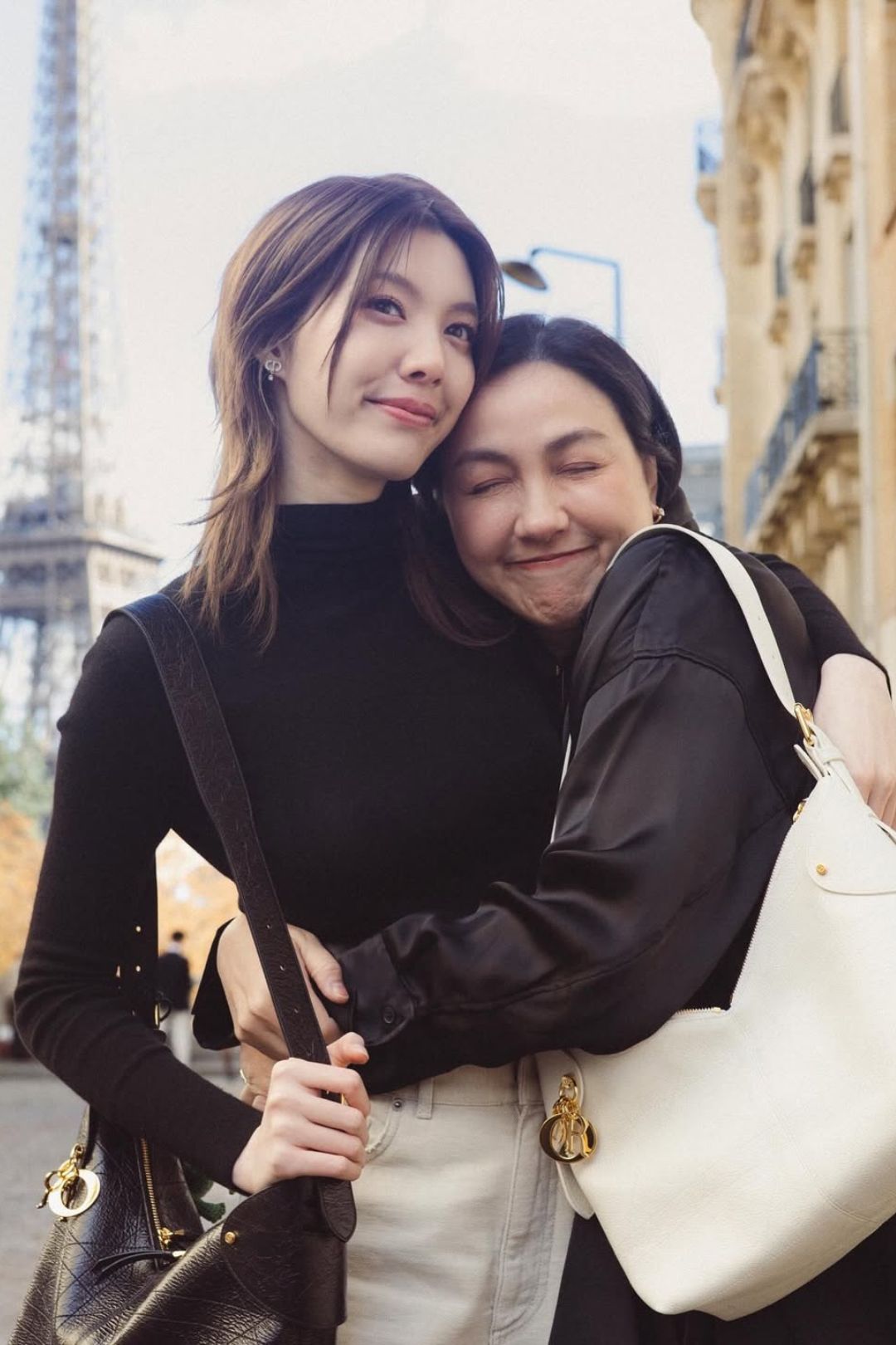 Gần đây nhất, khi Orm Kornnaphat đến Paris để tham dự show diễn Dior Thu Đông 2026, bà Mae Koy cũng đã sang Pháp để tháp tùng con gái (ảnh trên). Không chỉ mùa này, mà ngay cả mùa trước, bà cũng là người hộ tống con gái đến kinh đô ánh sáng. Hay tại các sự kiện xa xỉ của BVLGARI gần đây, hai mẹ con cũng như hình với bóng.