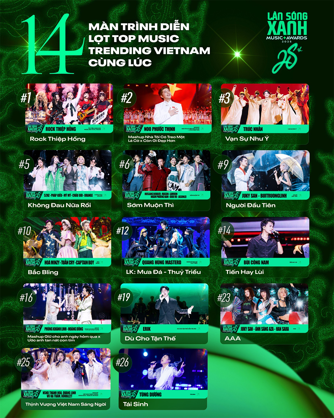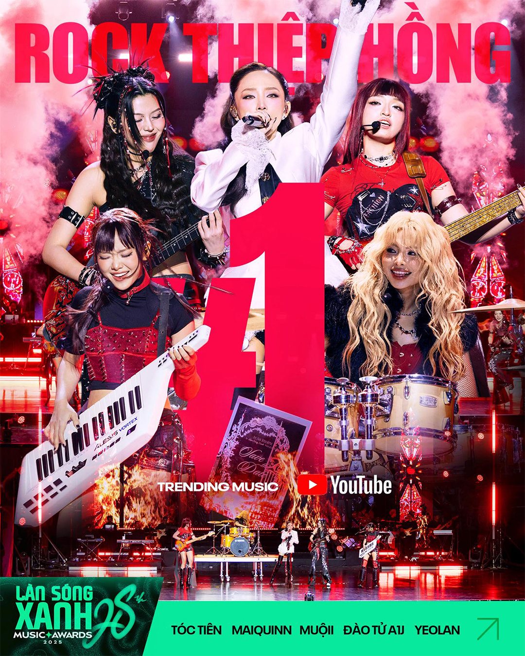 Khép lại mùa giải thứ 28, Làn Sóng Xanh 2025 không chỉ ghi dấu bằng những con số kỷ lục mà còn bằng cảm xúc thăng hoa. Và giữa đại tiệc âm nhạc ấy, Rock Thiệp Hồng của Tóc Tiên chính là biểu tượng cho tinh thần dám bứt phá, dám khác biệt – một cú nổ khiến cả không gian bùng cháy, để lại dấu ấn khó phai trong lòng khán giả.
