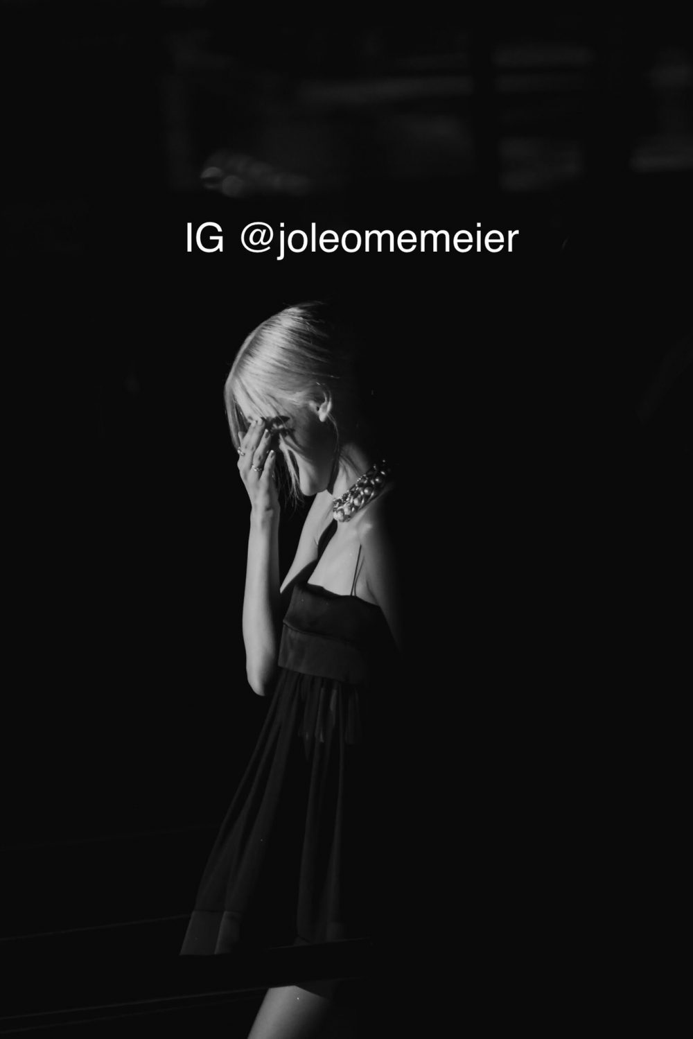 Một fan chụp được ảnh Rosé xúc động lau nước mắt khi được đón chào nhiệt liệt ở show Saint Laurent Xuân Hè 2022. Ảnh: Instagram @joleomemeier.