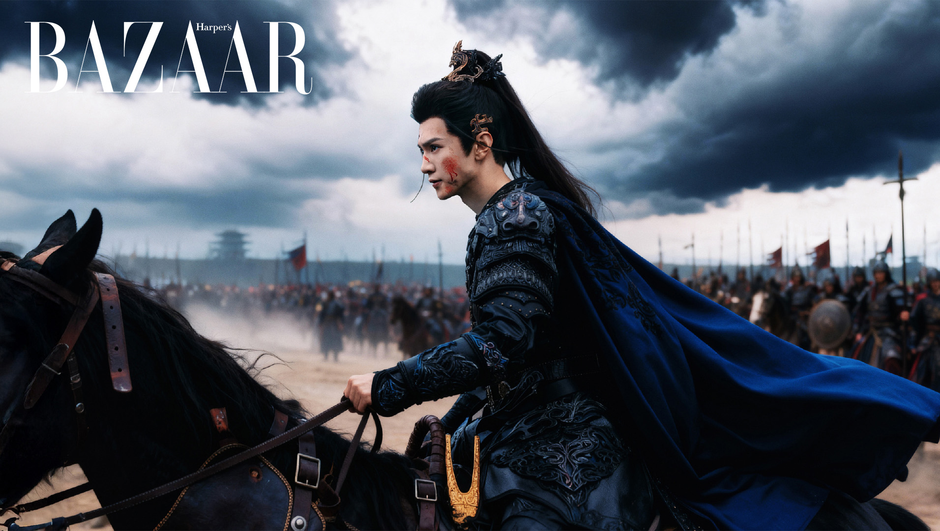 Tạo hình tướng quân của Trương Lăng Hách trong phim Hoa ngữ Trục Ngọc bị cư dân mạng gọi là tướng quân “đánh nền trước, đánh giặc sau”. Ảnh: Weibo @张凌赫工作室official