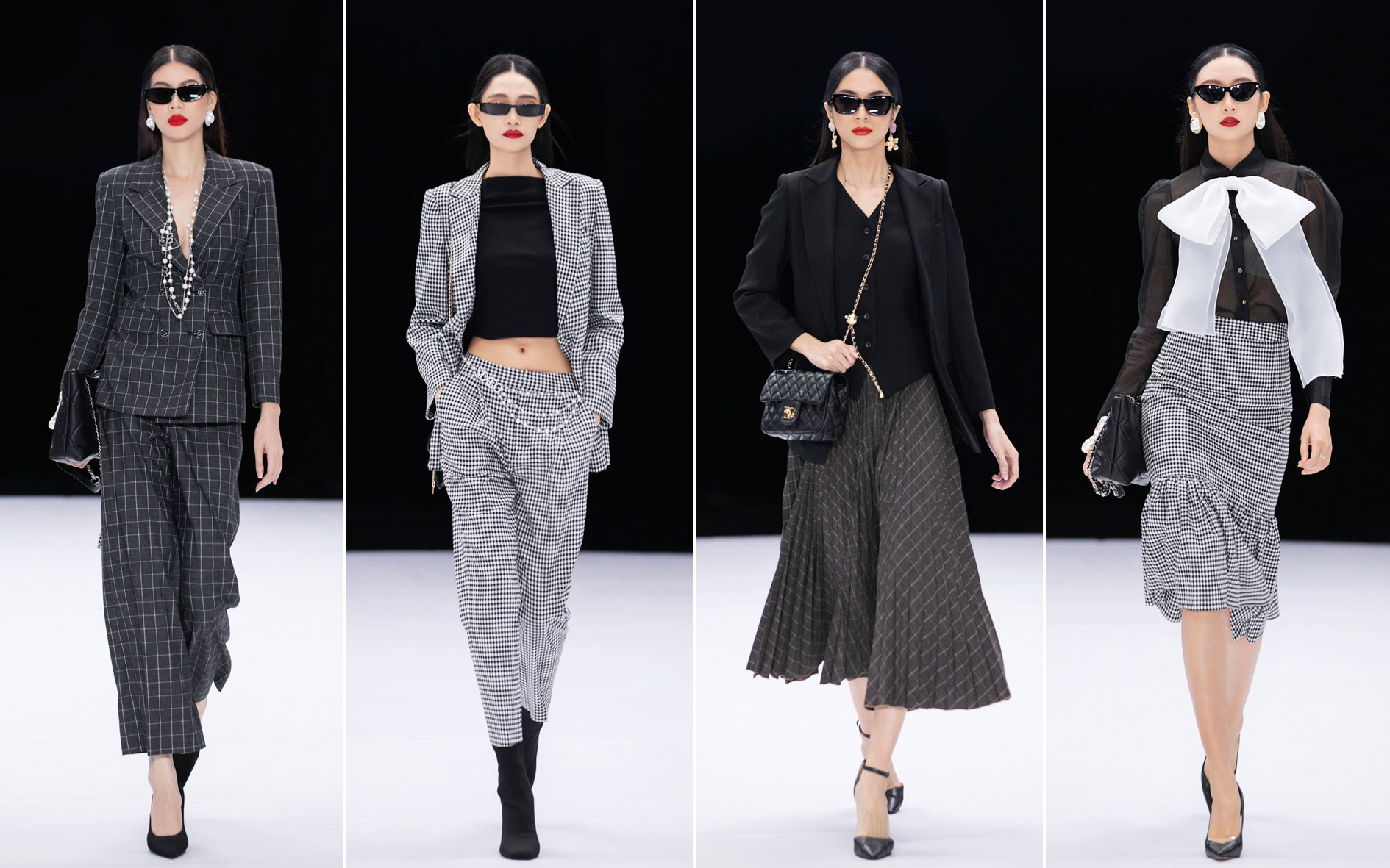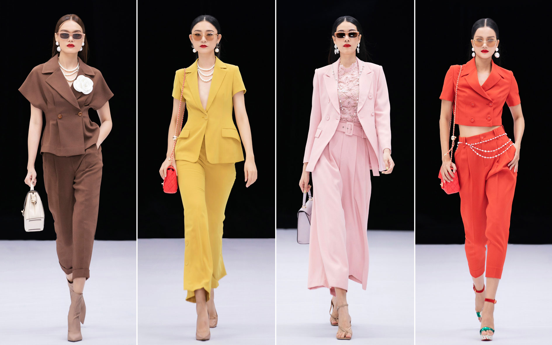 Những bộ suit và áo vest là trang phục cần có chốn công sở. Nhà thiết kế Đỗ Mạnh Cường đã dành hẳn một phần của show SIXDO Fashion Show 2021 cho “đồng phục” của các quý cô văn phòng.