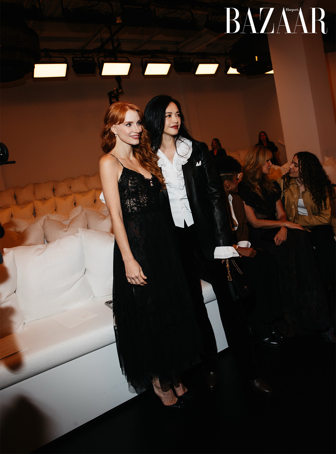 Diêu Thần ngồi bên cạnh Mindy Kaling (giữa) và Jessica Chastain (phải). Ảnh: Weibo
