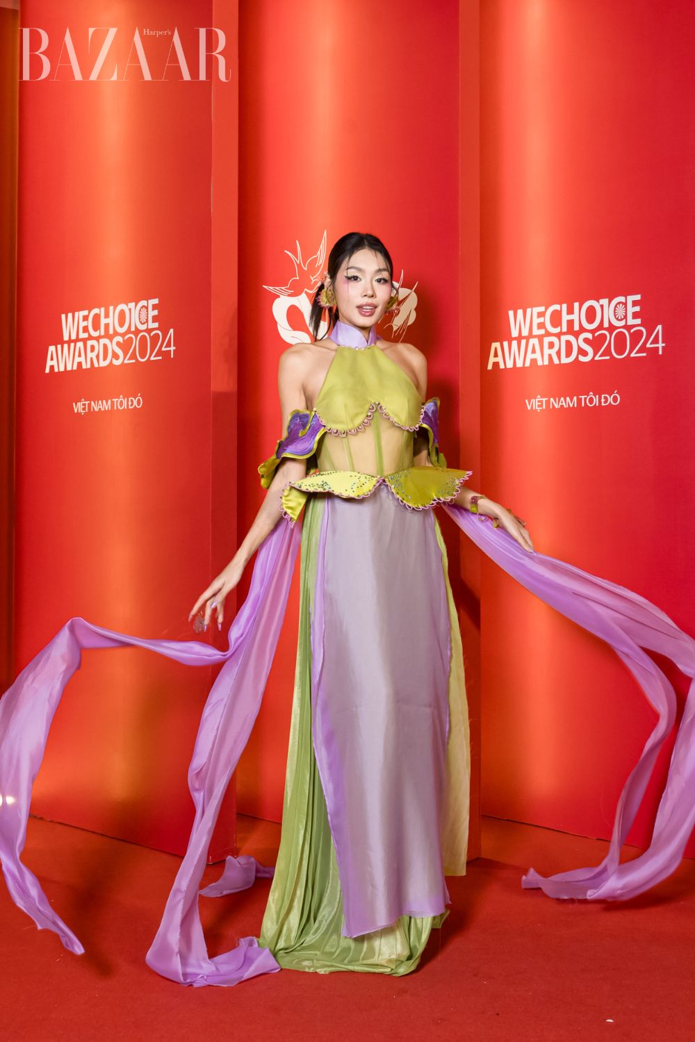 Không chỉ có những nàng hậu mới yêu thích những họa tiết nổi. Ca sĩ Orange, MC, người mẫu Quỳnh Lương đều làm bật vẻ đẹp của mình tại WeChoice Awards 2024 nhờ những chiếc áo dài sống động trong cách tạo điểm nhấn. Lớp vải voan nhẹ nhàng trên áo dài của Orange lay động trước gió theo từng bước đi, trong khi đường nét uốn lượn quanh những đóa hoa khổng lồ trên thân áo Quỳnh Lương còn đáng chú ý hơn chiếc cổ áo cách tân thành cổ sơmi.