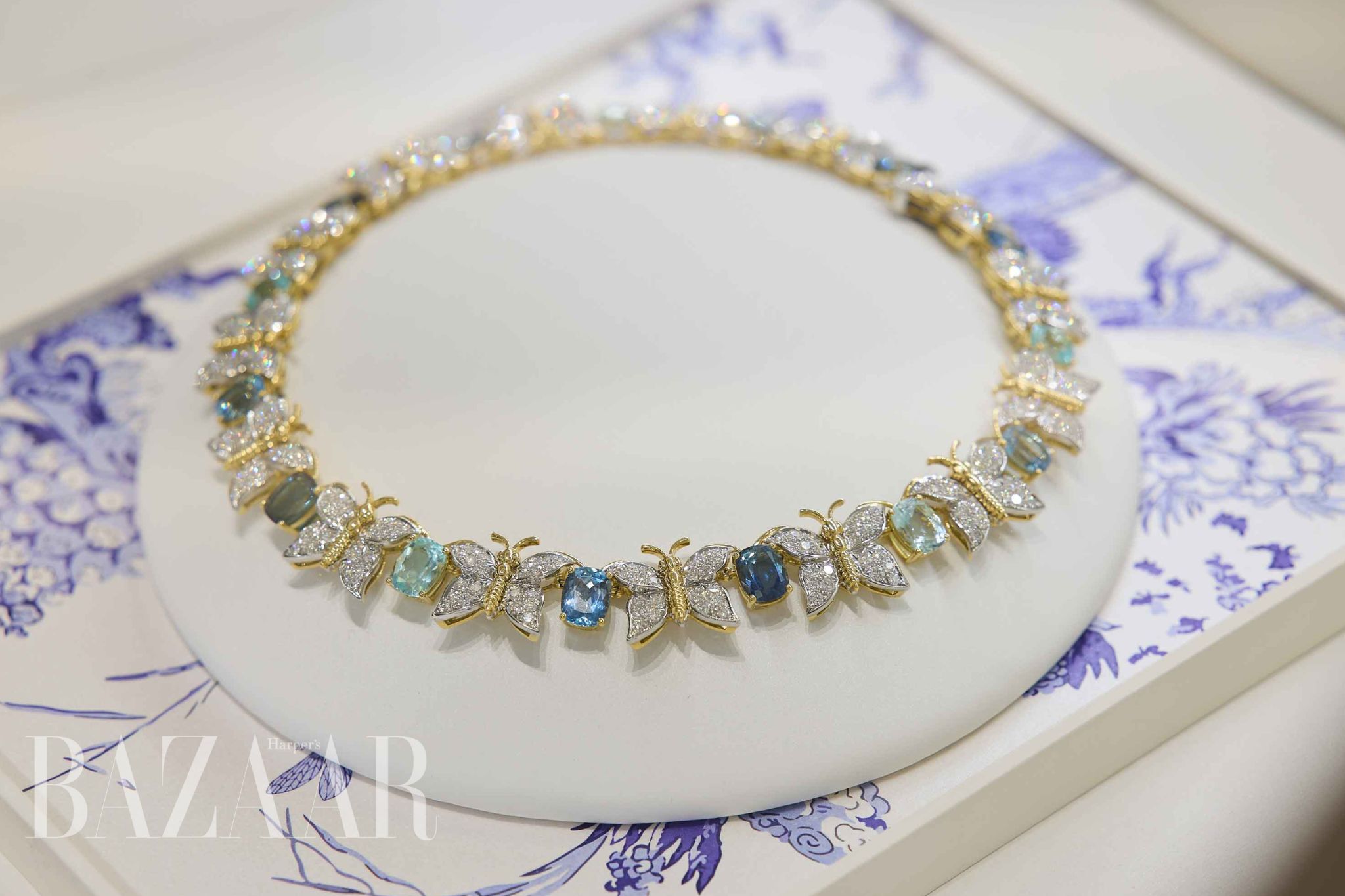 Trong số các thiết kế thuộc nhóm vòng cổ high jewelry của Tiffany & Co., Diamond Butterfly Necklace là đỉnh cao kỹ thuật và thẩm mỹ. Hơn 22 carat kim cương, được cắt ghép thành hình cánh bướm đang mở, uyển chuyển như thể chú bướm thật đang đậu trên làn da.