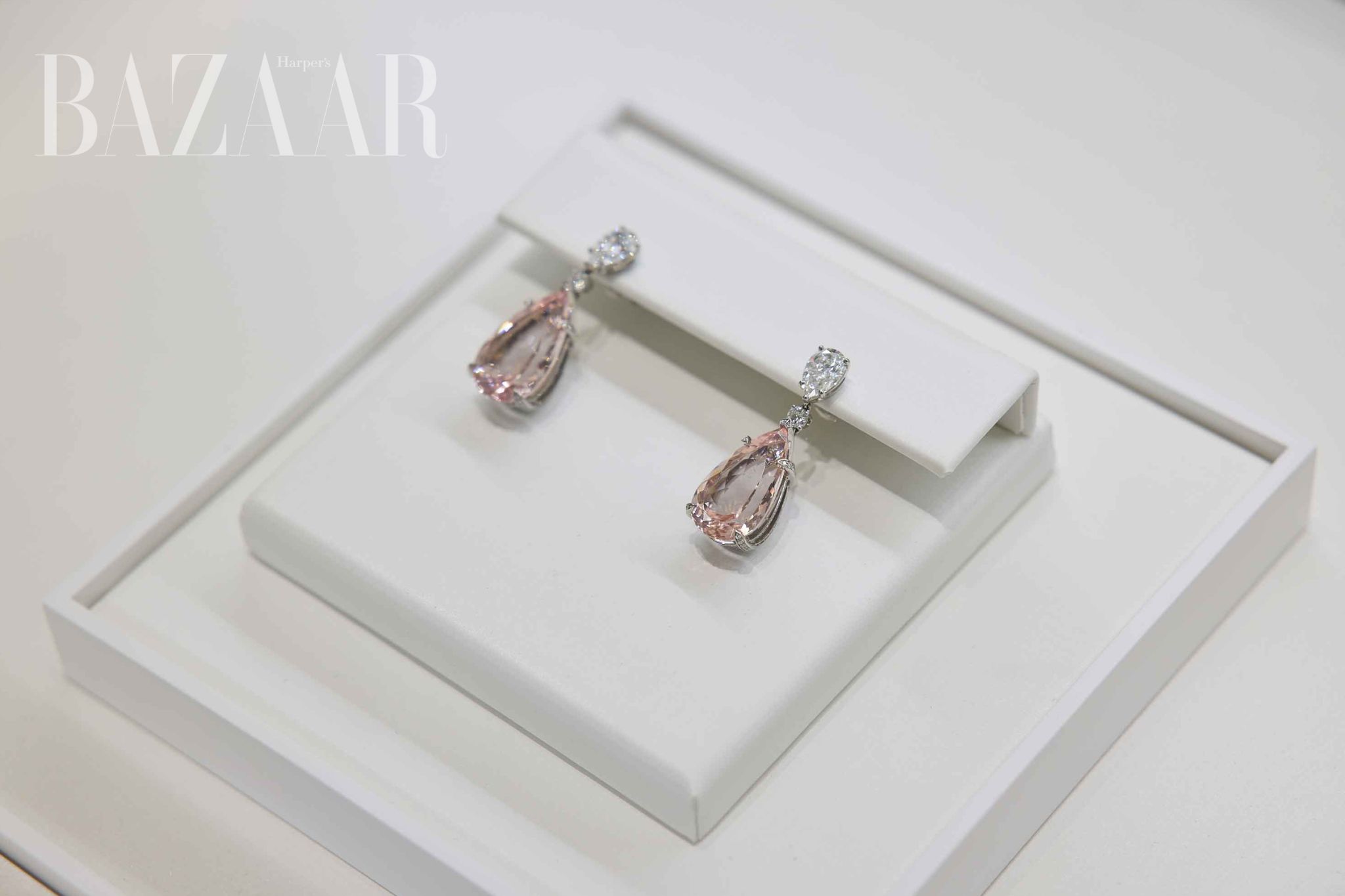 Tại sự kiện High Jewelry Caravan của Tiffany & Co., Morganite được sử dụng làm điểm nhấn trong các mẫu dây chuyền đeo cổ và nhẫn cocktail, nổi bật trên nền vàng hồng hoặc bạch kim. Đôi khi viên đá được kết hợp với kim cương pave; sự tương phản giữa màu hồng mềm mại và kim cương lấp lánh làm tăng độ nổi bật cho thiết kế.