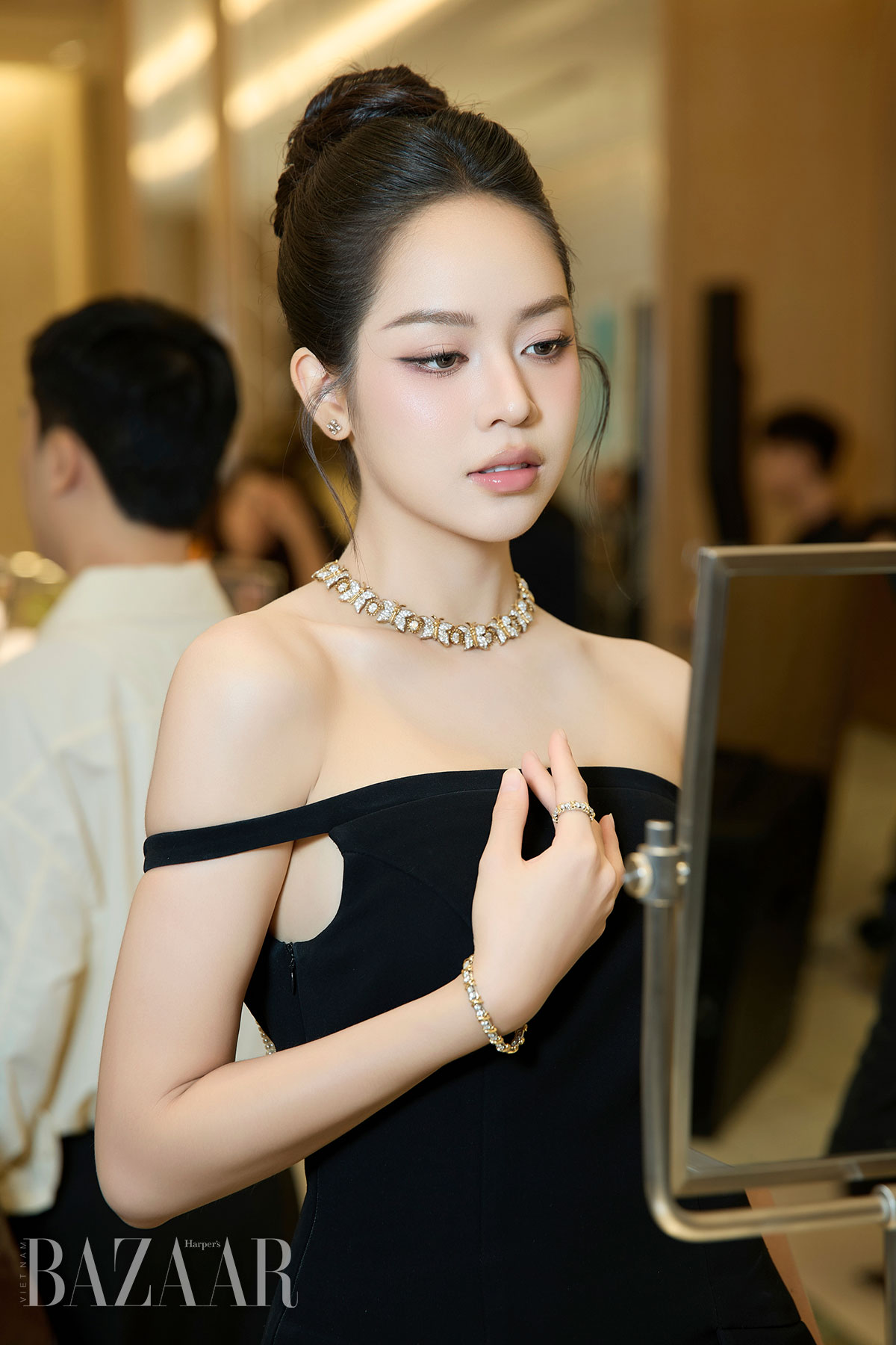 Hoa hậu Thanh Thủy chiêm ngưỡng chiếc vòng cổ high jewelry của Tiffany & Co.