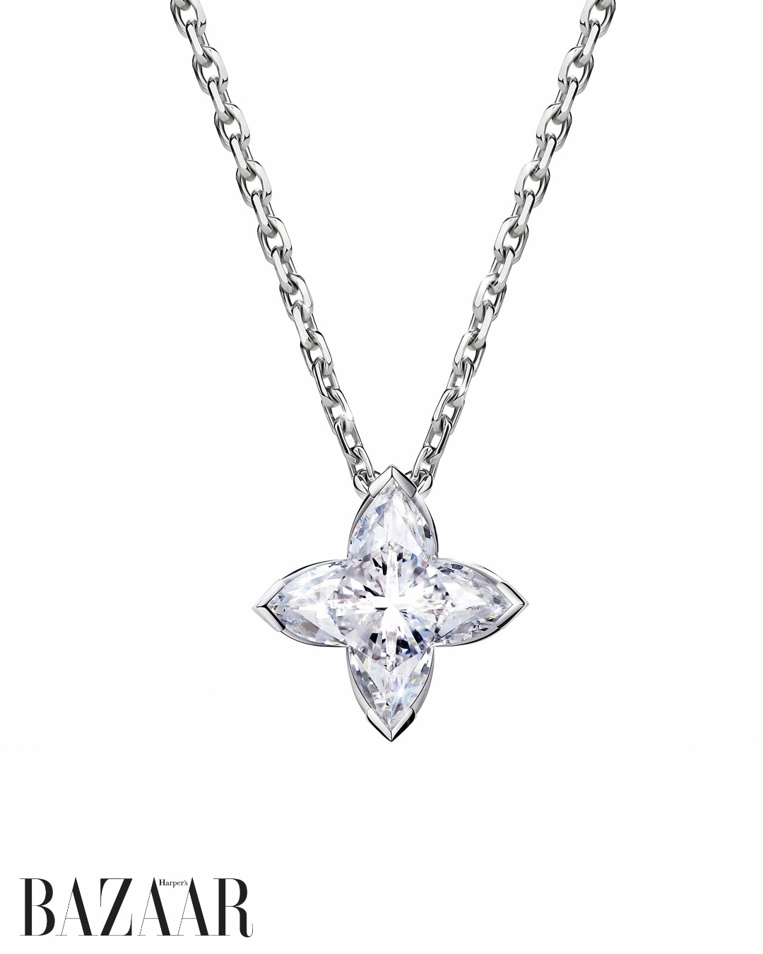 Dây chuyền LV Diamonds chế tác từ vàng trắng, đính kim cương LV Monogram Star.