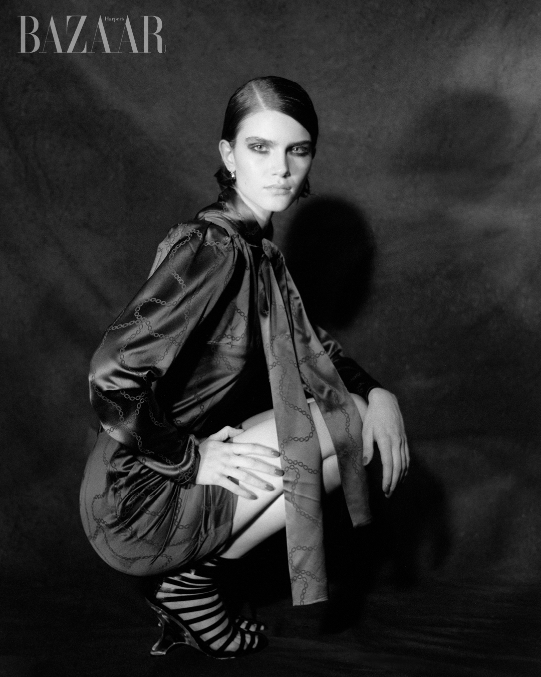 Đầm: Adeam. Vớ: Wolford. Giày: Schutz.