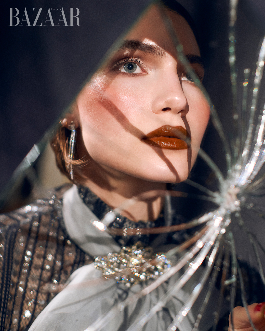 Nhiếp ảnh gia Paul Westlake và fashion editor Alison Hernon cho biết: Họ lấy cảm hứng từ phong cách của nhiếp ảnh gia nổi tiếng Man Ray khi thực hiện bộ ảnh này. Gương cầm tay, mảnh gương vỡ, bóng đổ và những mảng phản chiếu đậm tính Siêu thực giúp biến vẻ hào nhoáng thành một giấc mơ đầy ẩn ý.