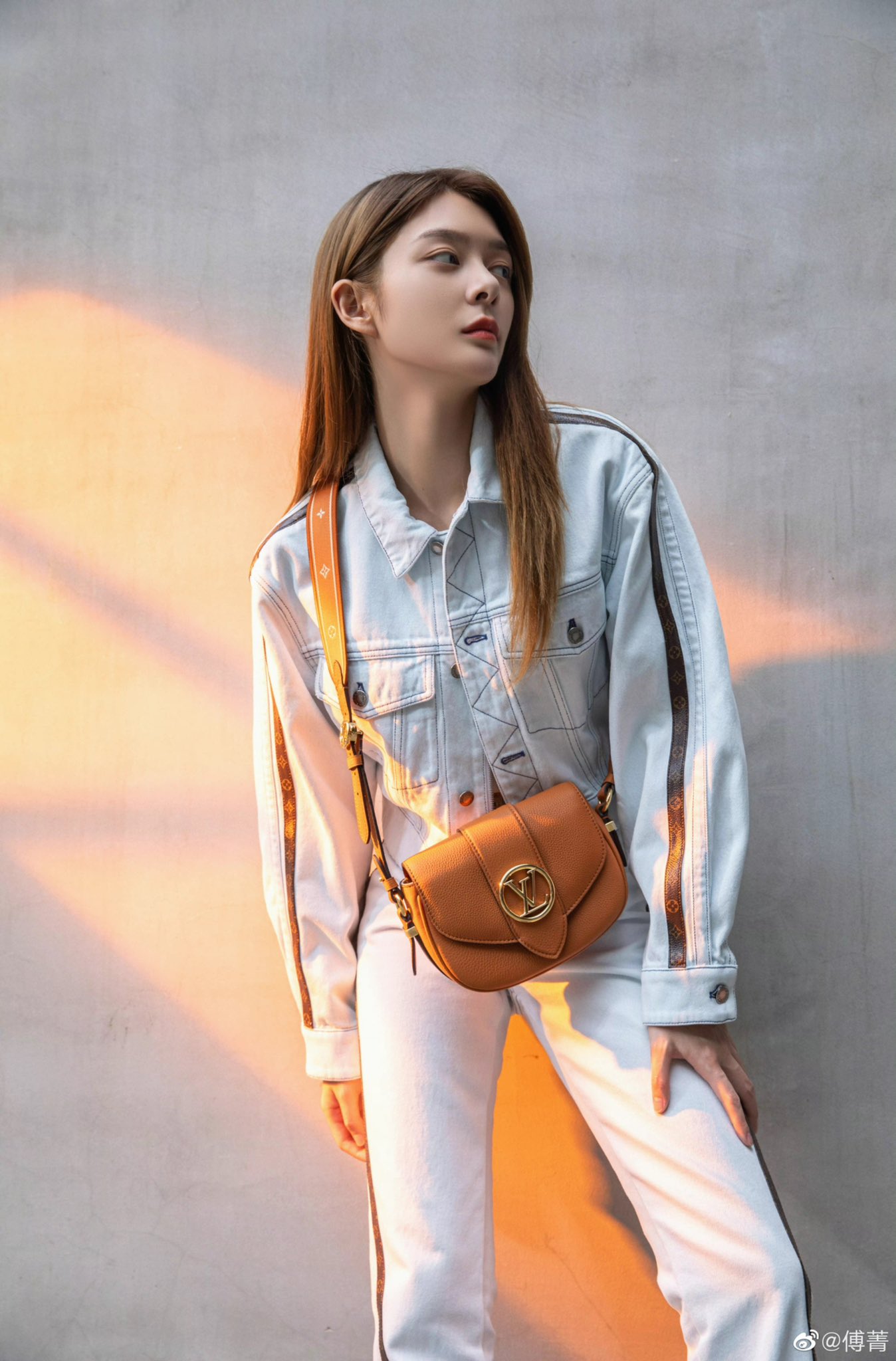 Ca sỹ Phó Tinh ra dáng ngầu và chịu chơi khi phối túi xách Pont 9 Soft cùng bộ cánh denim từ Louis Vuitton. Chiếc túi tròn trịa, dễ thương cân bằng lại vẻ nam tính của trang phục.