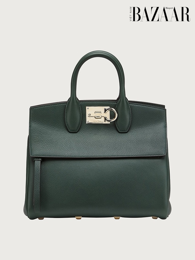 Túi Studio Bag của Salvatore Ferragamo« sở hữu vẻ bề ngoài có phần giản dị. Kiểu dáng hình chữ nhật cổ điển, nhằm làm nổi bật các chi tiết tạo nên sự độc đáo. Túi có 3 kích cỡ được thiết kế có ngăn chứa đồ rộng rãi; và có kèm quai dài để đeo chéo hoặc đeo trên vai vô cùng linh hoạt. Những chiếc đinh tán kim loại bên dưới túi lộ ra khi đeo qua vai tạo hiệu ứng bất ngờ.