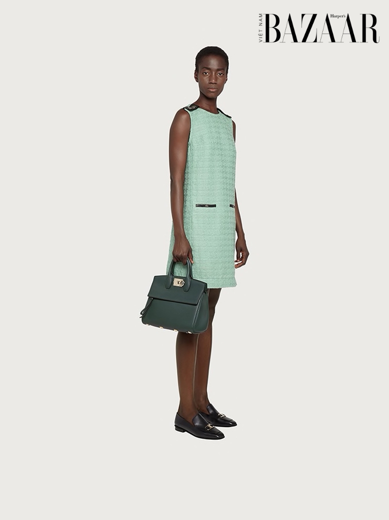 Miệng túi được trang trí tỉ mỉ bằng biểu tượng “Gancini”. Khóa này có thể nâng lên hoặc hạ xuống; và tạo ra một chuyển động nữ tính mới của bàn tay. Chi tiết này mang đến sự tinh tế; và giá trị thiết thực dành cho những người phụ nữ hiện đại.