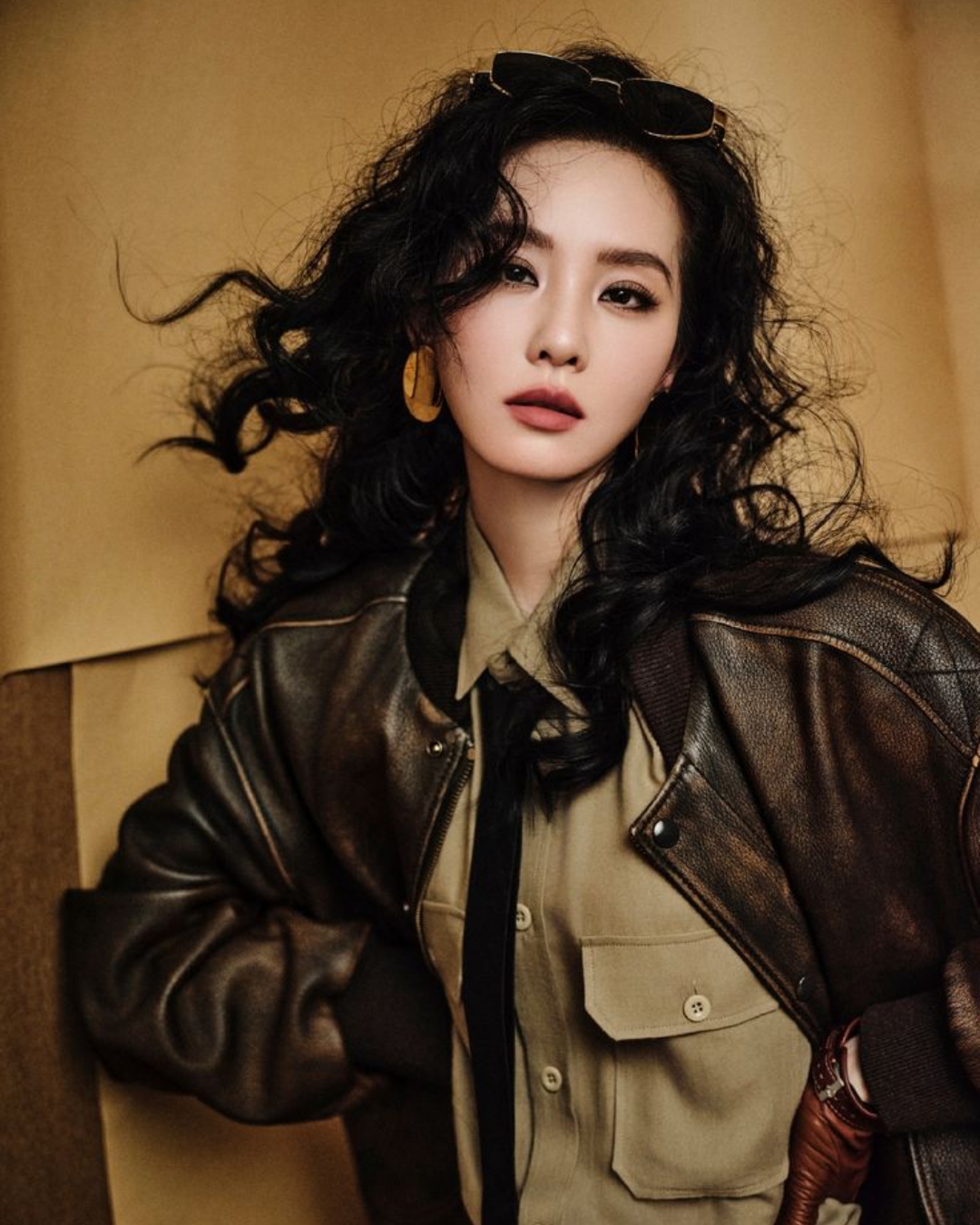 Sức hút của Lưu Thi Thi nằm ở độ tương phản giữa khuôn mặt thanh thoát, làn da sứ mịn màng, cùng kiểu tóc mạnh mẽ và phóng khoáng. Tóc xù mì trở thành điểm phá vỡ khuôn mẫu, làm nổi bật khí chất tự do của người phụ nữ ở ngưỡng 40.