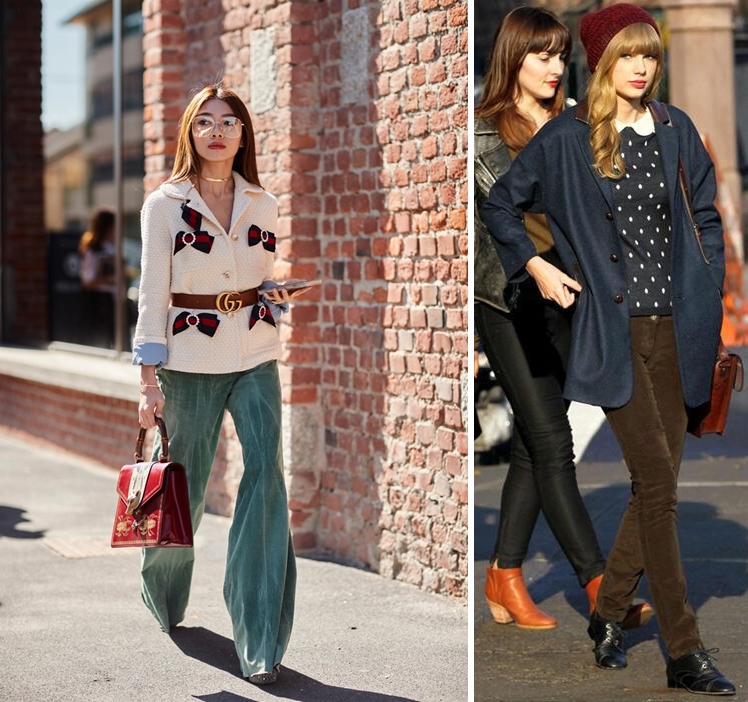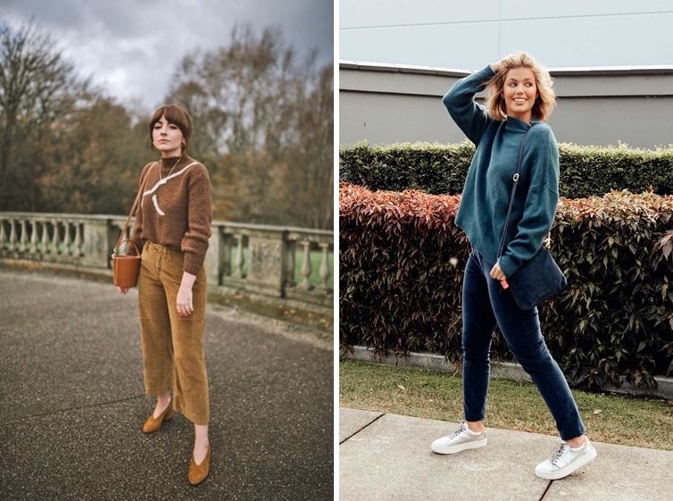 Quần nhung sọc tăm thích hợp với các kiểu áo len ấm áp.