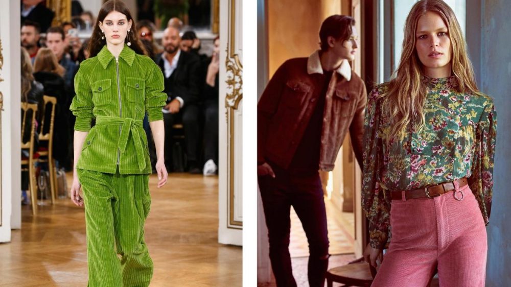 Vải nhung sọc tăm thích hợp cho cả nam lẫn nữ. Mango (phải) từng ra mắt những chiếc quần cạp cao làm từ vải nhung tăm với giá chỉ $50