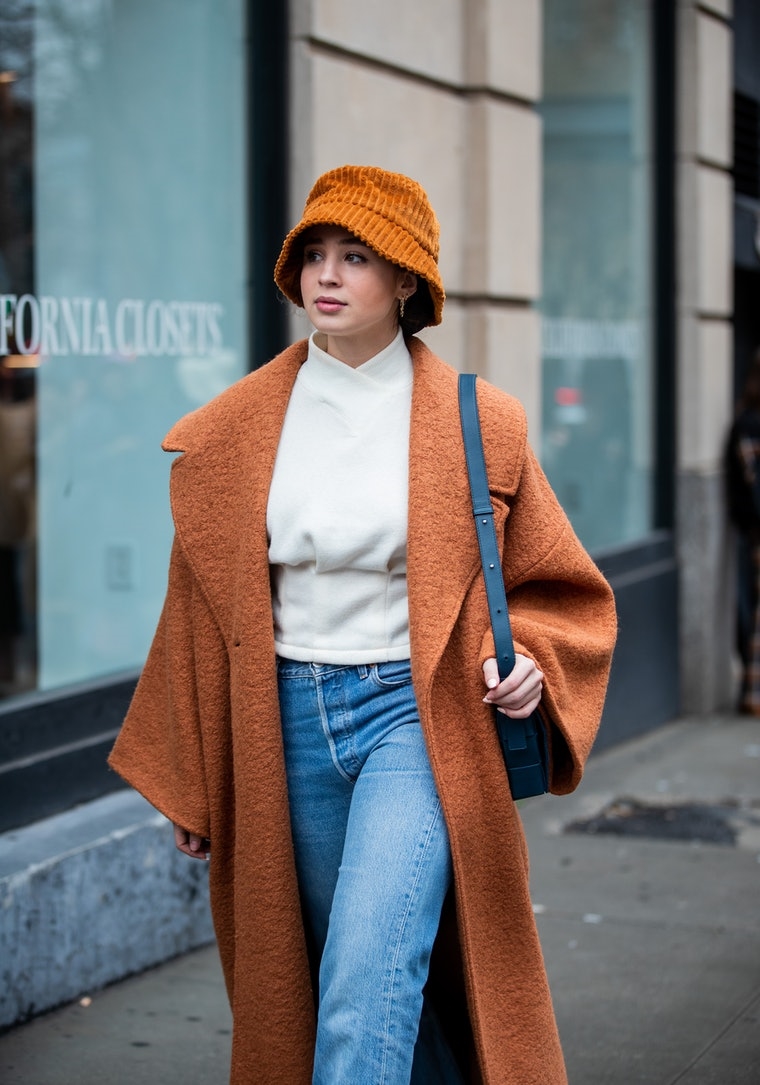 Nếu chưa quen với chất liệu vải này, bạn có thể thử sức với một chiếc mũ bằng vải nhung sọc tăm sợi to.