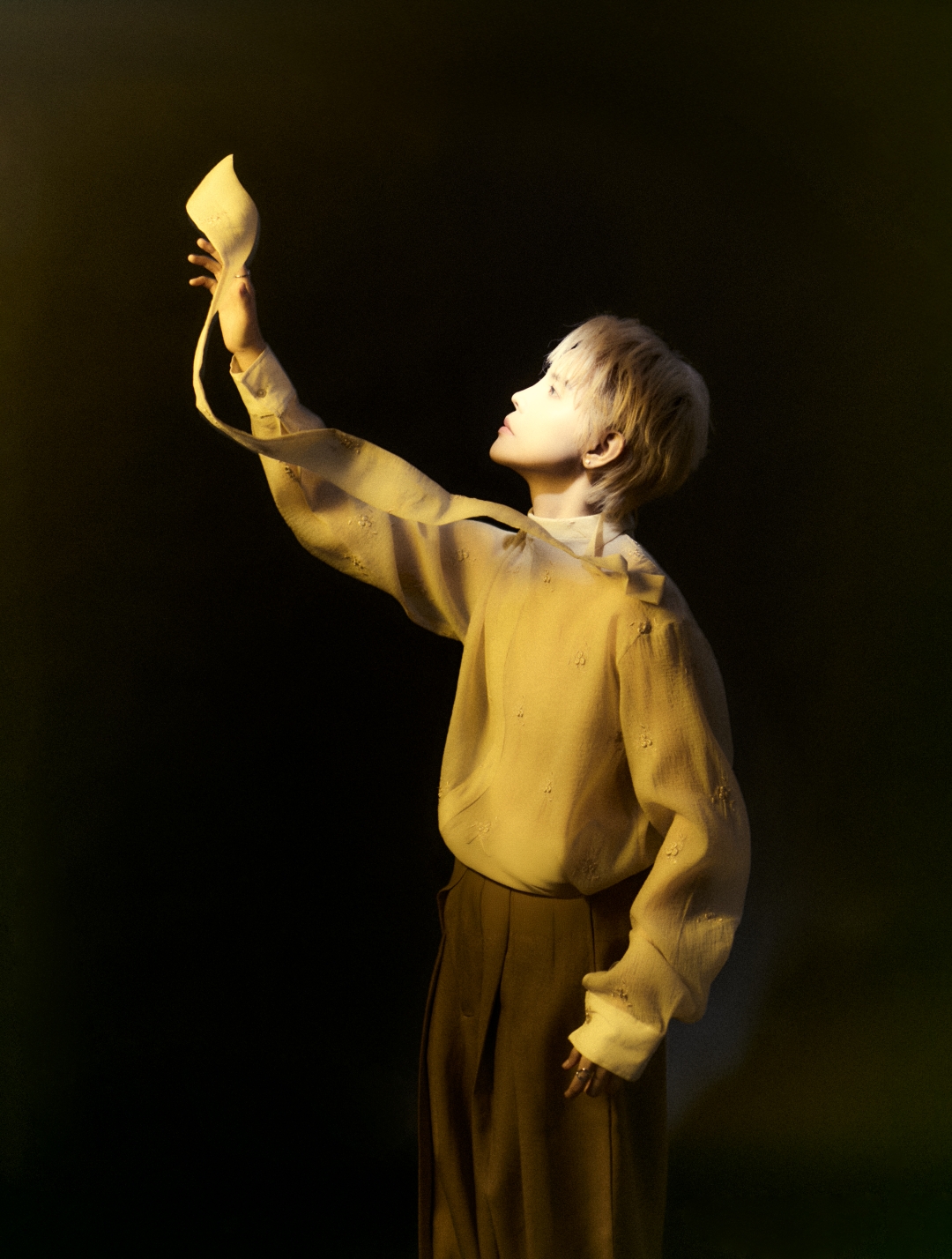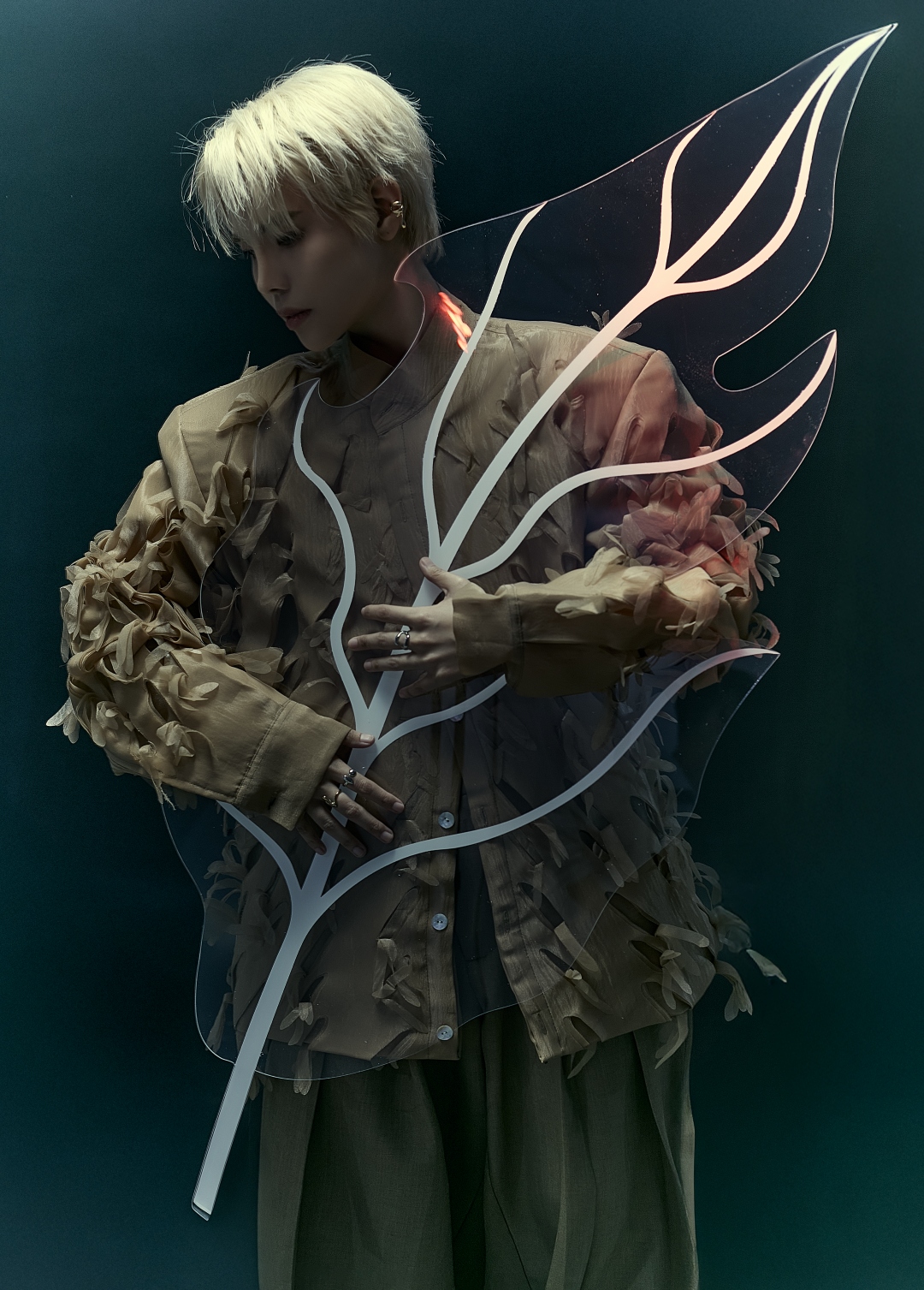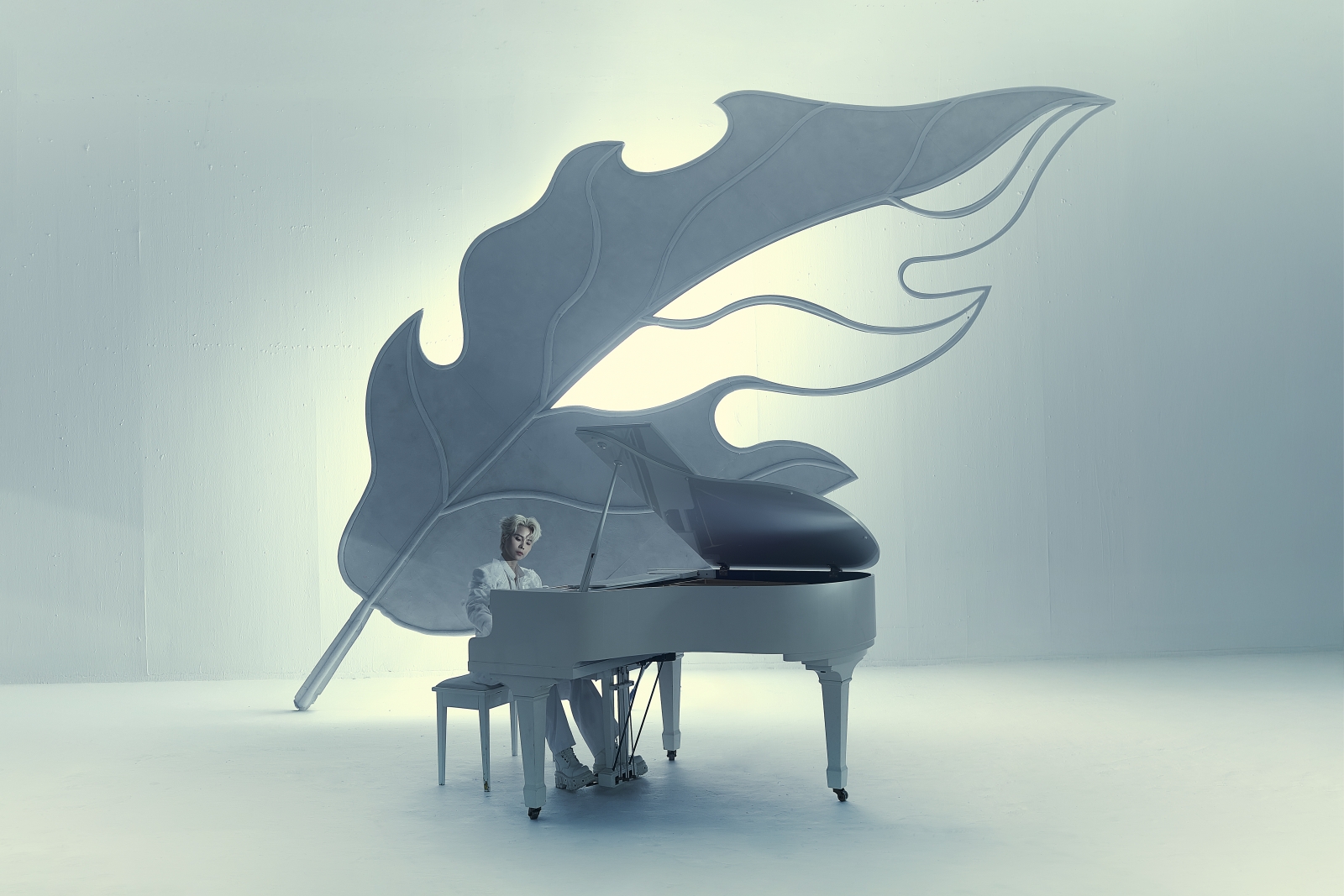 Hình ảnh chiếc lá bị khuyết với Vũ Cát Tường chính là để ánh sáng xuyên qua, như bù lấp những khoảng trống nội tâm người nghệ sĩ. Ảnh: NVCC