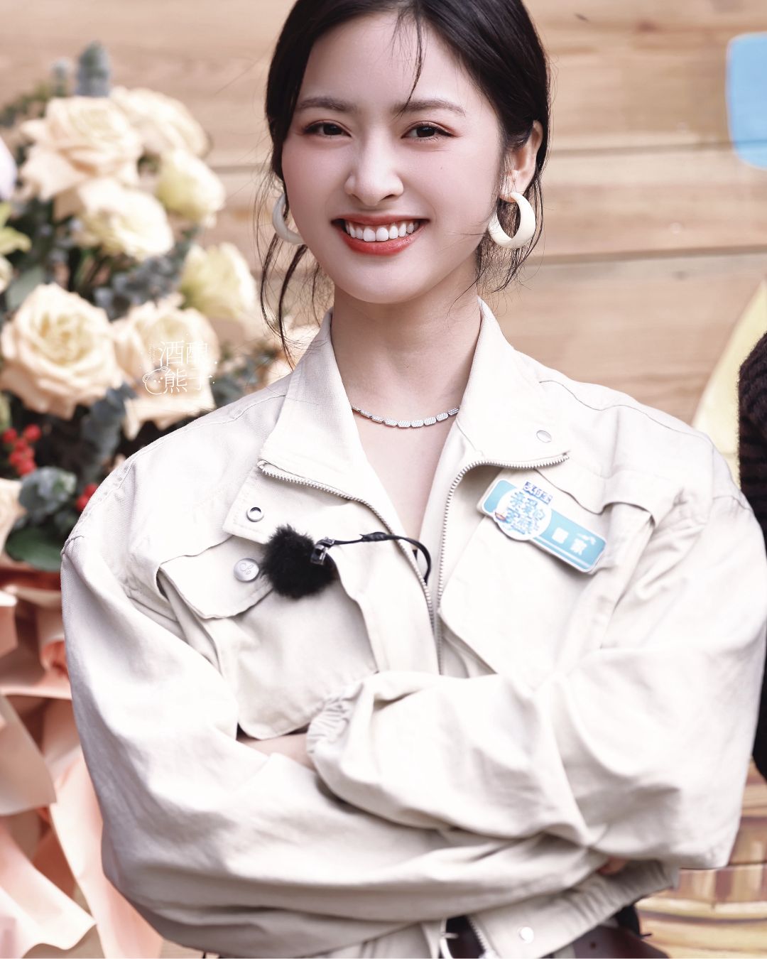 Thẩm Nguyệt rạng rỡ trong ngày khởi quay. Ảnh: 醒浪熊子