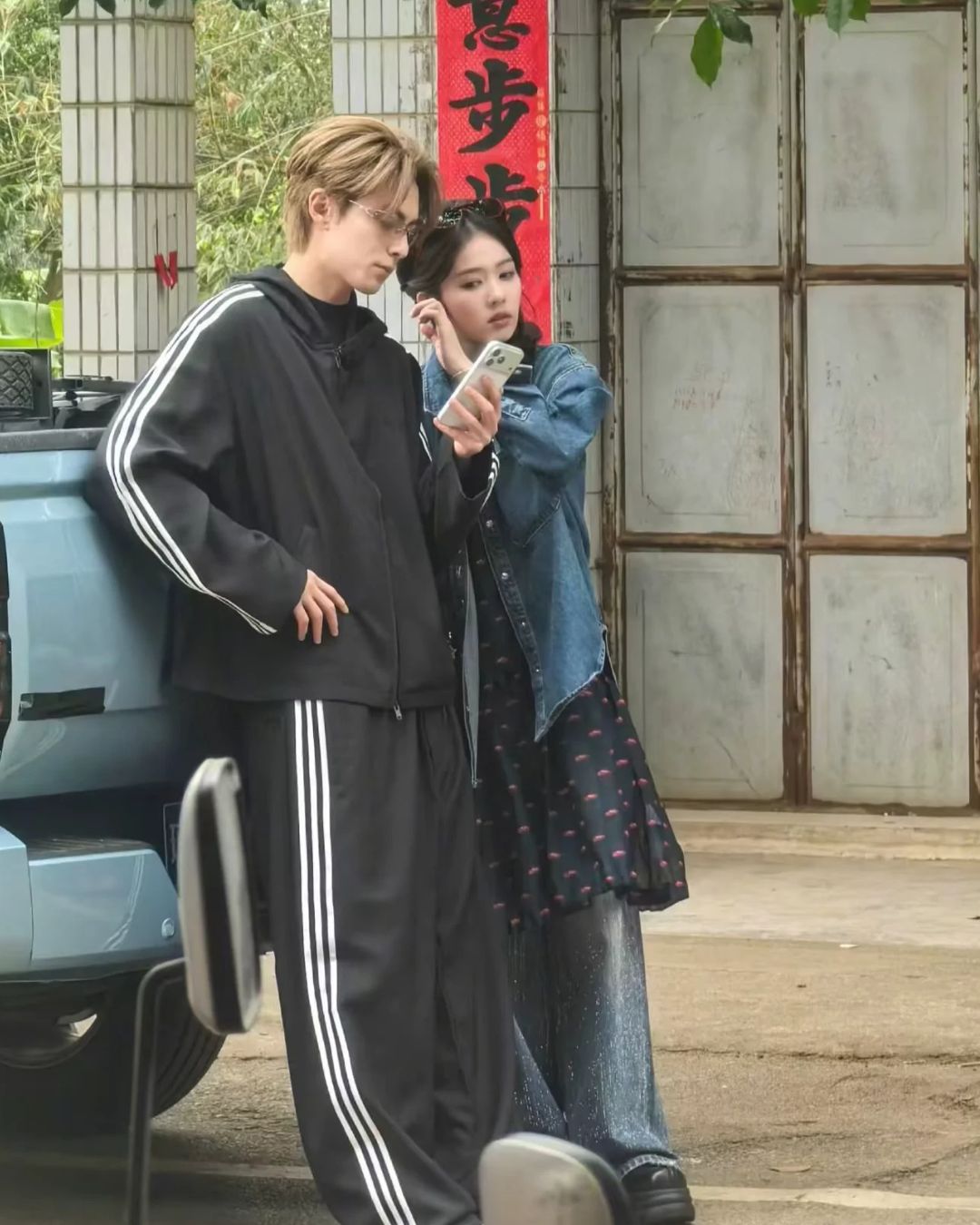 Ở những hình ảnh chụp tại hậu trường, Vương Hạc Đệ mặc toàn đồ đen nhưng lại nhuộm tóc nâu sáng, trông như boy phố cà lơ phất phơ, còn Bạch Lộc mặc váy dài ngoài quần jeans vô cùng đáng yêu. Hai người bị bắt gặp đứng trước quầy thịt lợn, thảo luận với chủ quán về việc mua gì, khiến cư dân mạng không khỏi xuýt xoa rằng khung cảnh đời thường như thế này thực sự quá hiếm gặp.