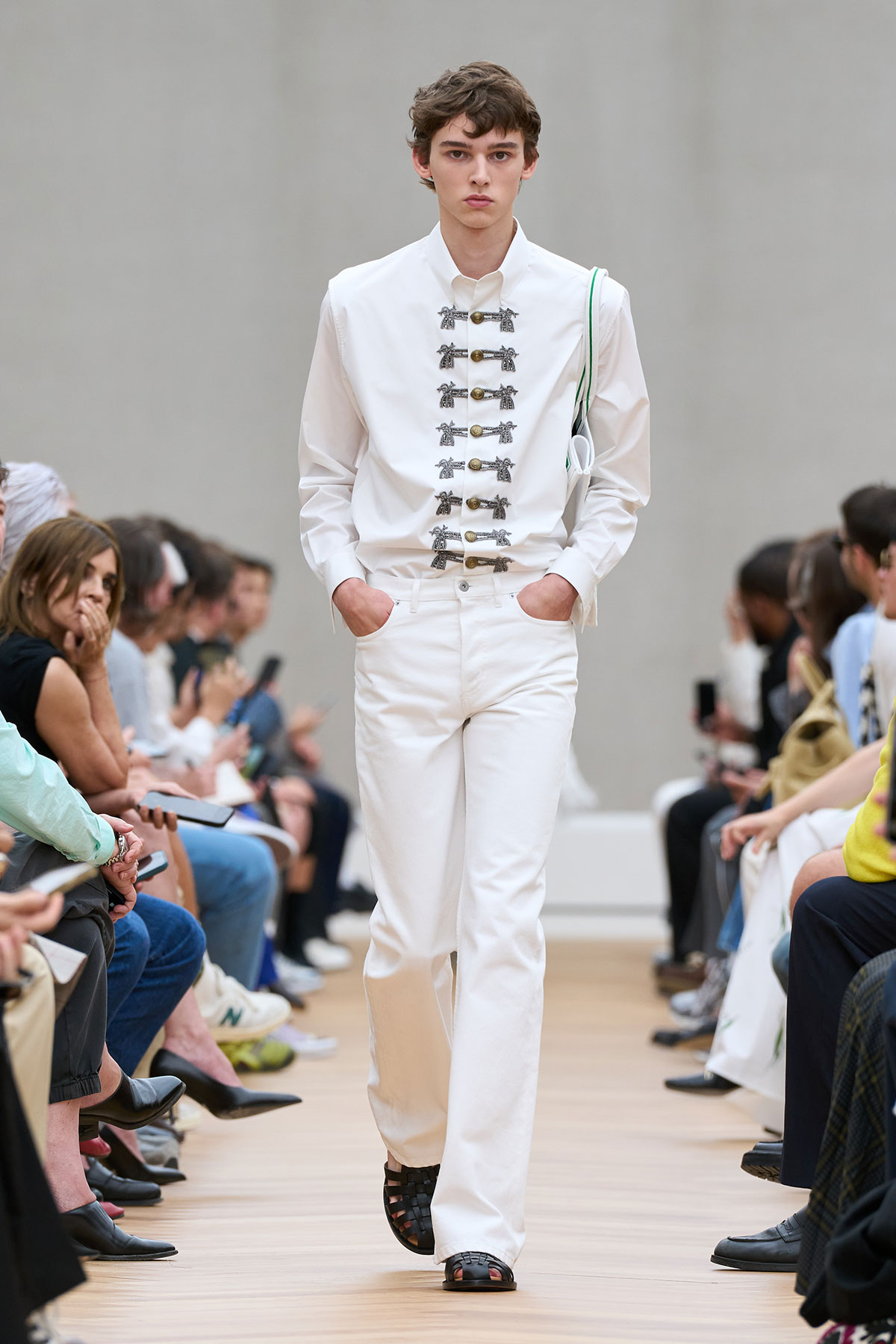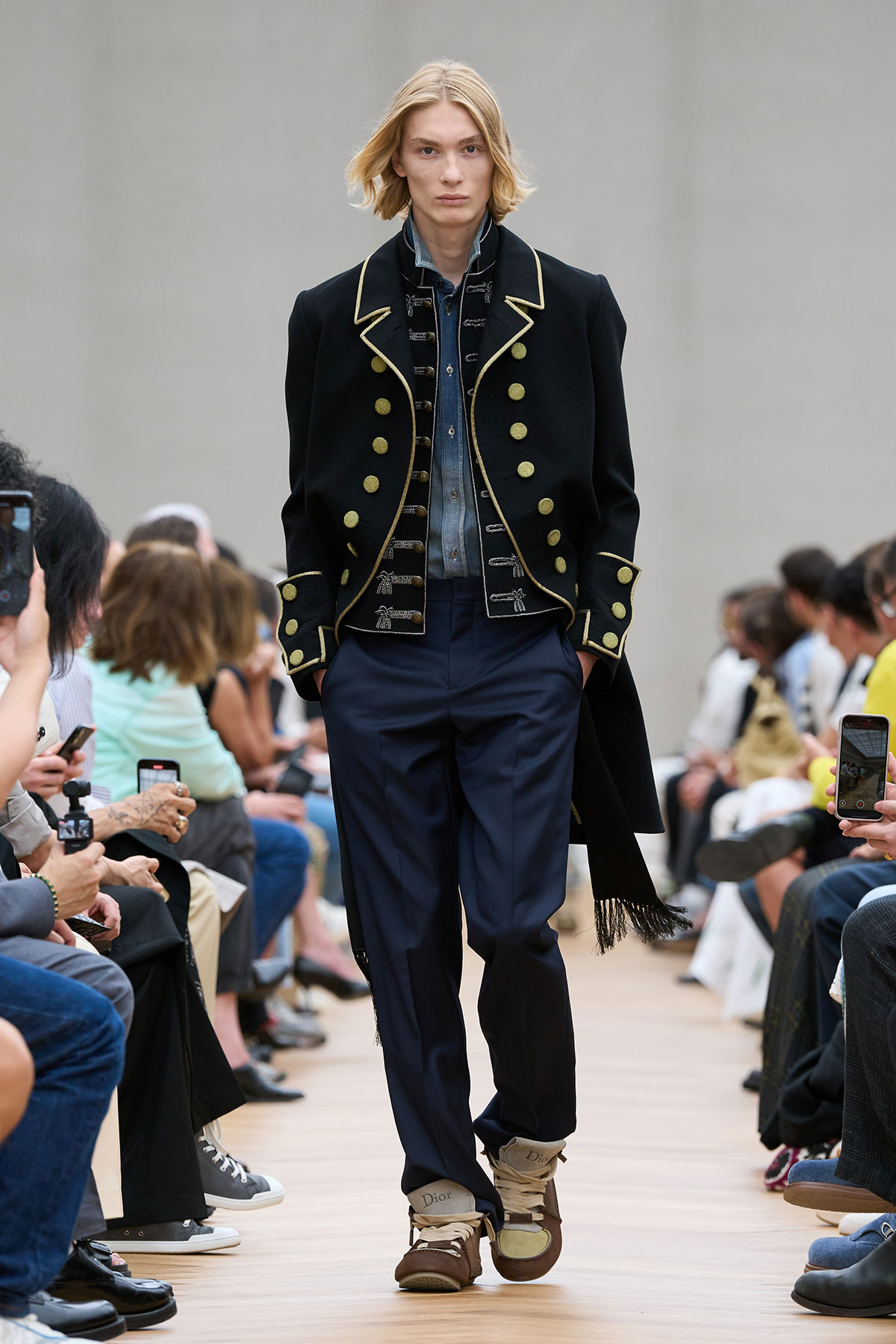 Khó mà bỏ quên được Dior Men. Jonathan Anderson đã thiết kế thật nhiều biến thể áo khoác Napoleon cho BST debut của mình trong mùa mốt Xuân Hè 2026 – một động thái kiệm lời nhưng lại mang tính tuyên ngôn rõ ràng. Nhà thiết kế người Ireland cho thấy mình hiểu về di sản, lịch sử Pháp, và cũng ngầm khẳng định mình sẽ là người lèo lái ra trò cho Dior với những chiến lược chẳng thua Napoleon Bonaparte nơi chiến trường.