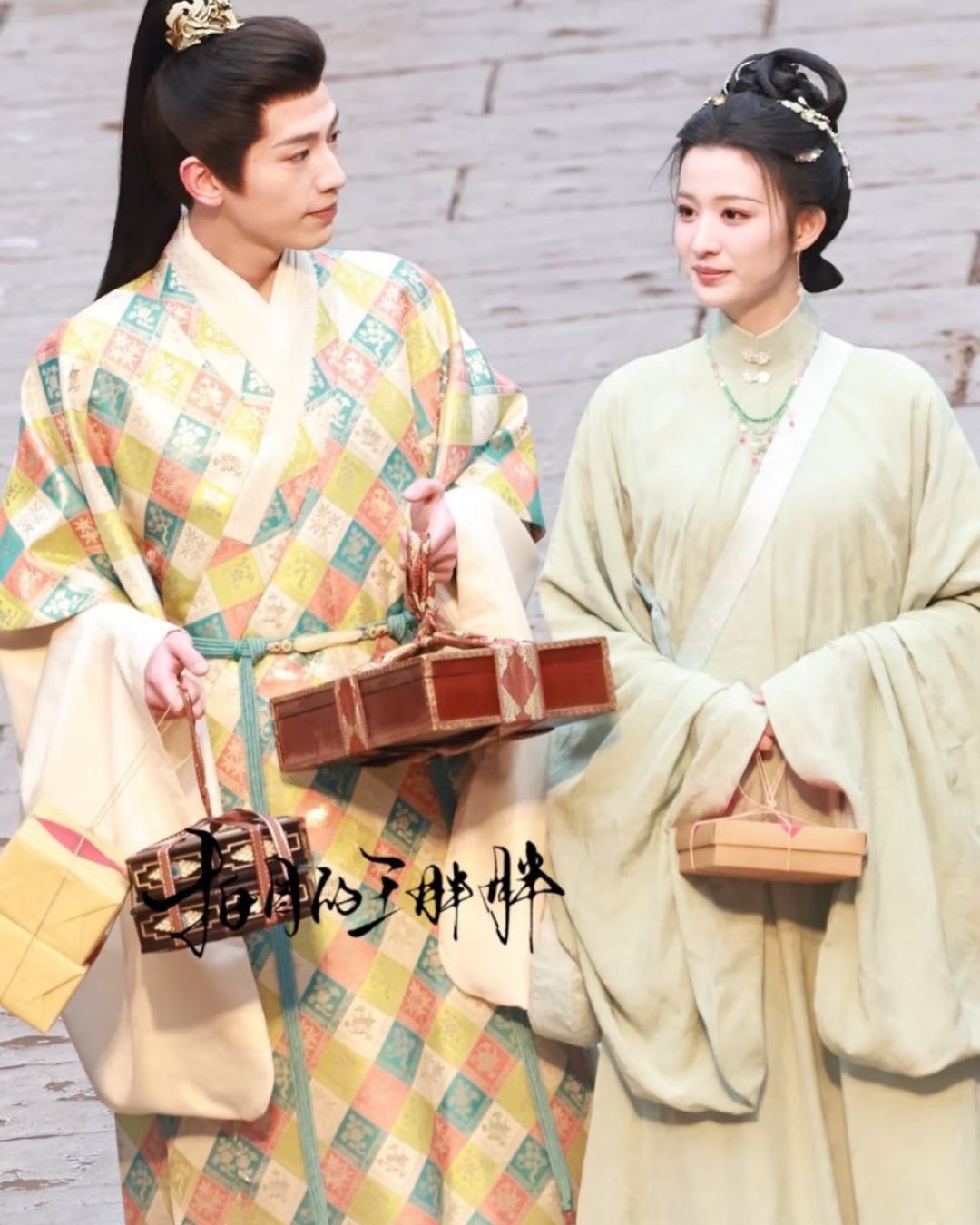 Tân Vân Lai và Vương Sở Nhiên trên phim trường Minh Nguyệt Lục